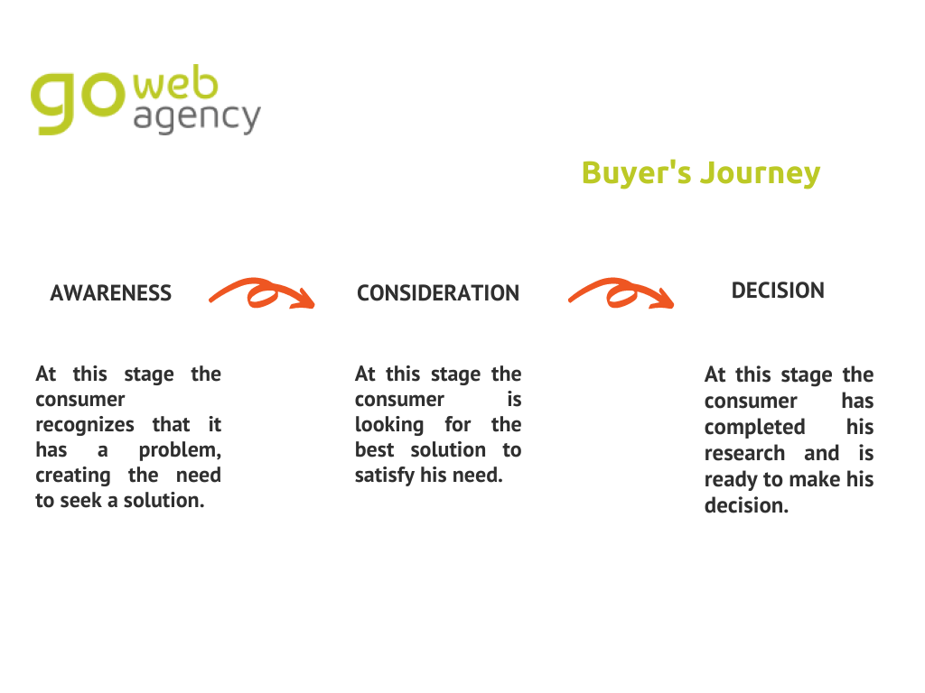 Today, customers research what they want before making a decision. This new process is called the Buyer’s Journey, which goes through 3 phases: