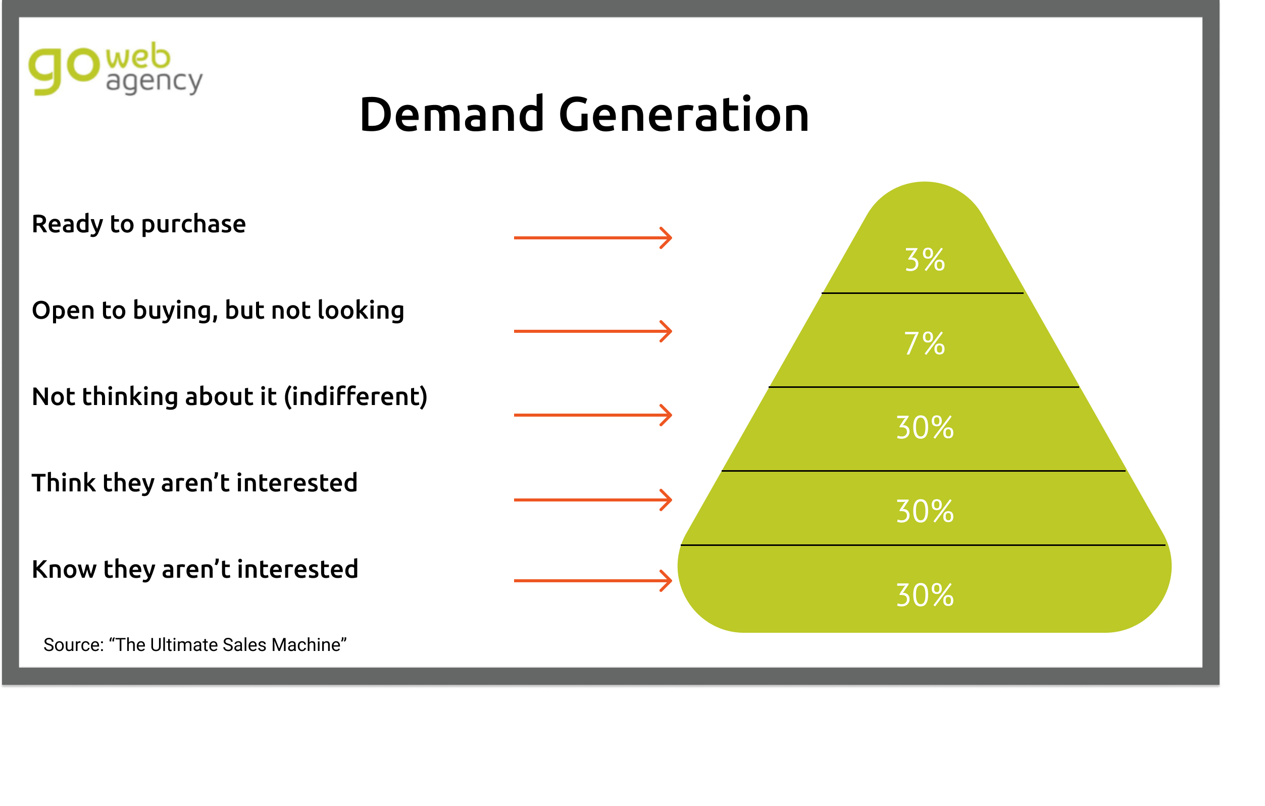 Having a visit to your website, for example, does not mean that the visitor is already in the purchase phase. According to Chet Holmes, only 3% of people are willing to buy.